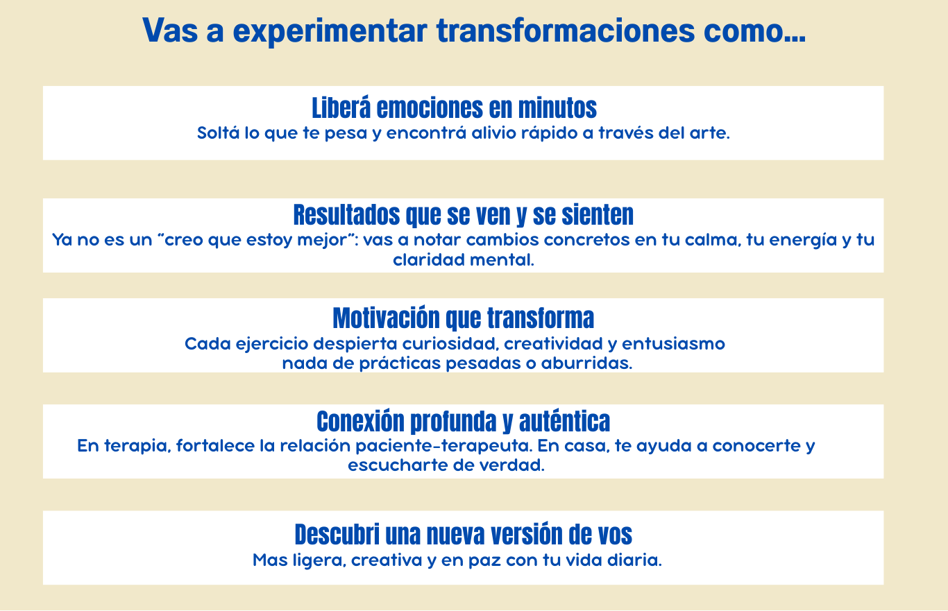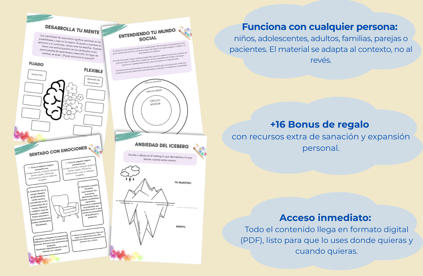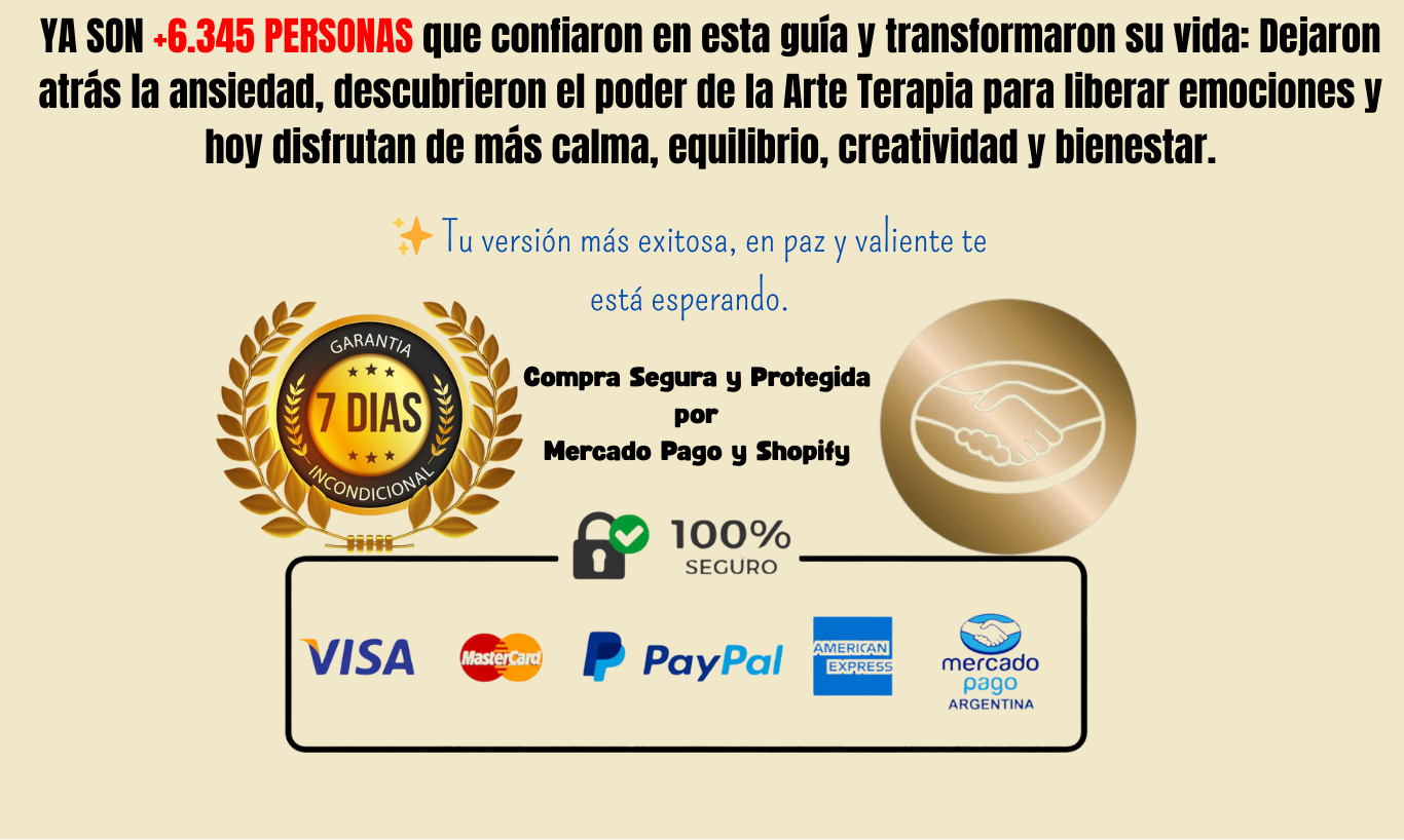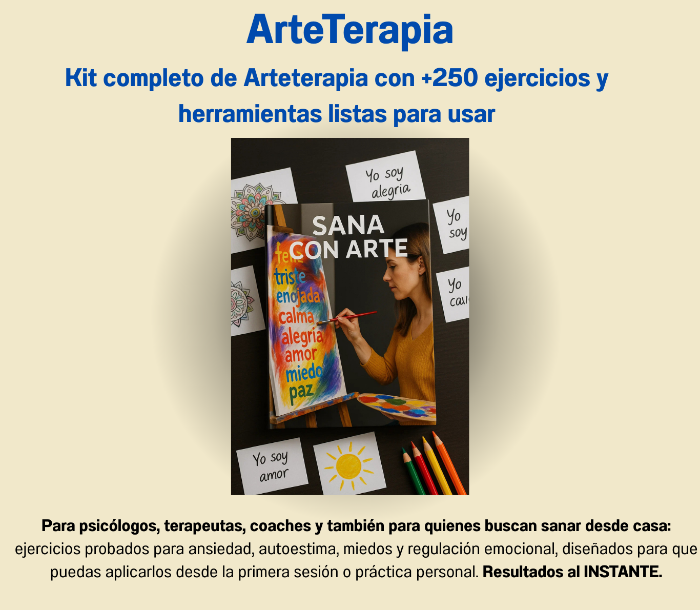 Estás comprando un ebook digital de Arte Terapia, una guía práctica con más de 30 ejercicios y herramientas para reducir el estrés, liberar emociones y recuperar tu calma interior. Además, te llevás bonus de regalo exclusivos que potencian tu transformación.
